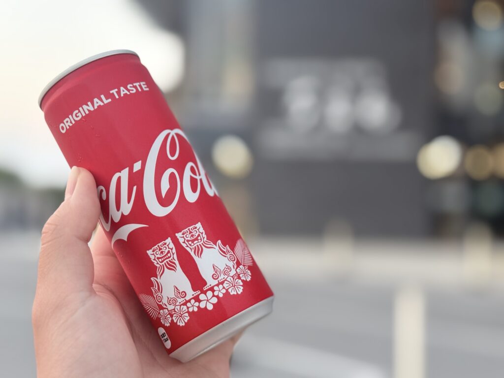 沖縄限定デザインのコーラを飲んでスッキリ。