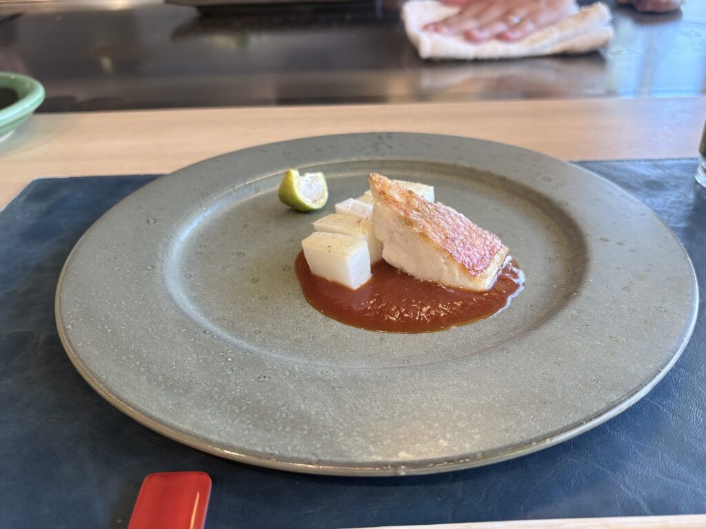 魚とお肉は店員さんが目の前で焼いてくれます。