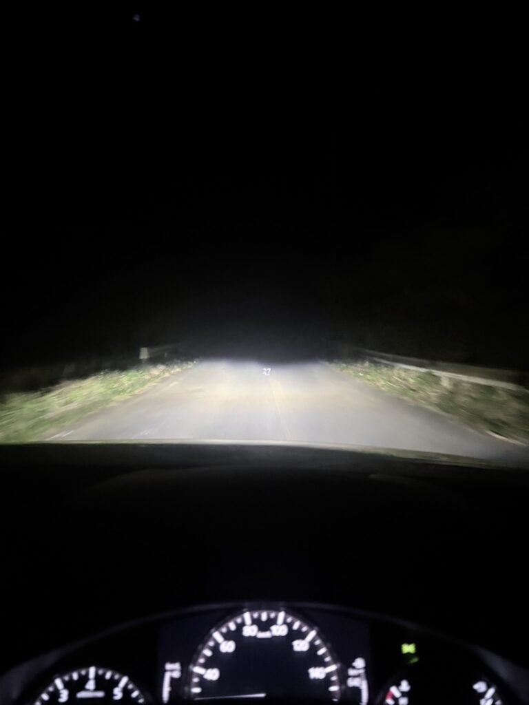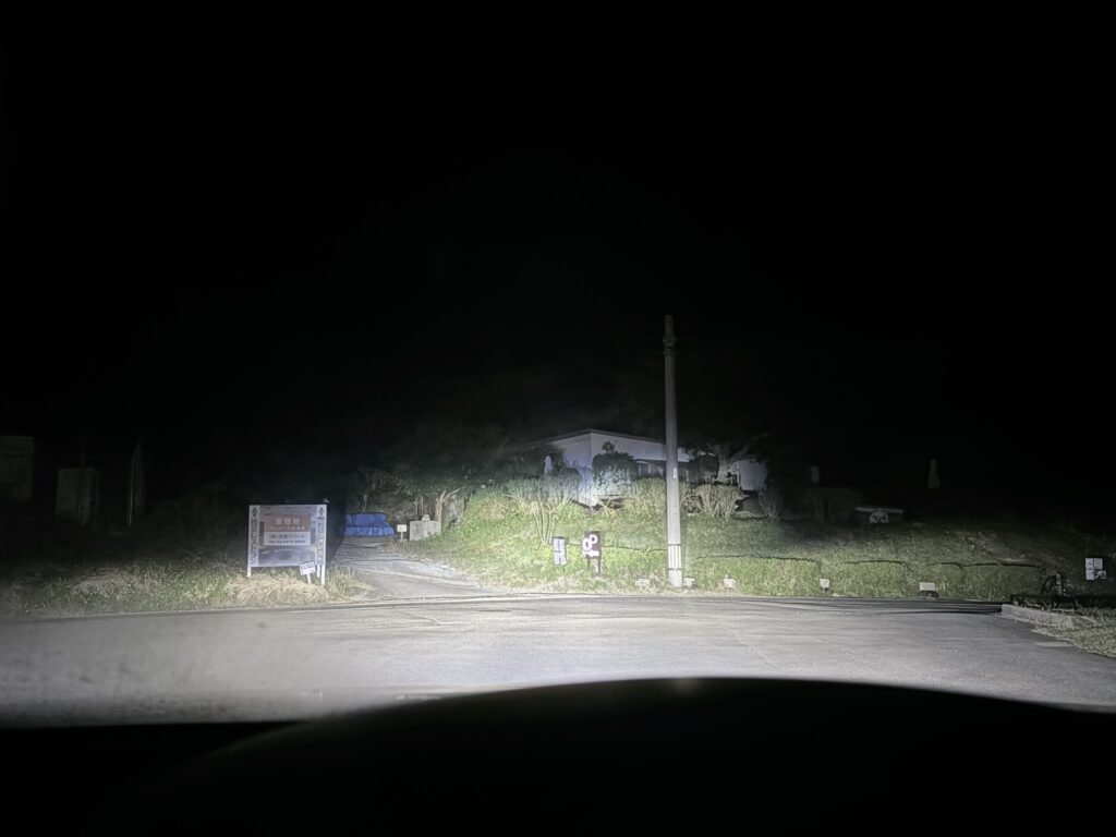 街灯なんて当たり前のように無い道を永遠と走ります。ライトを消すとガチで何も見えません。